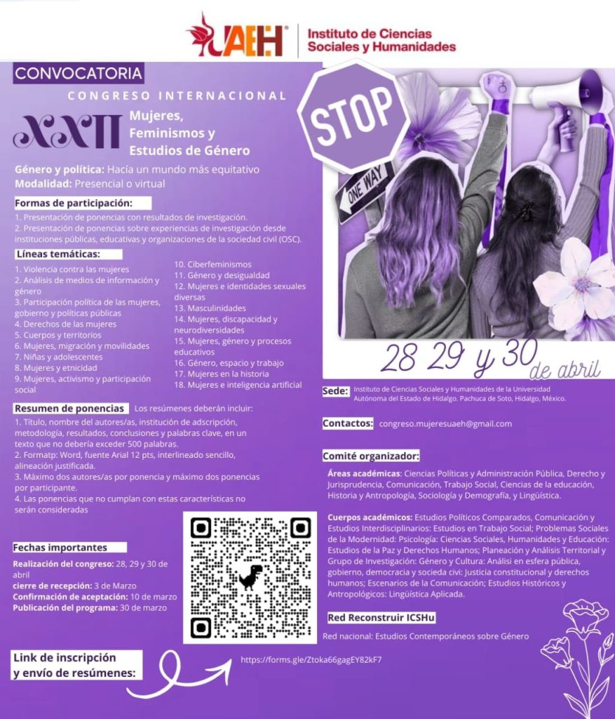 ICSHu UAEH convoca a Congreso Internacional sobre mujeres, feminismos y estudios de género