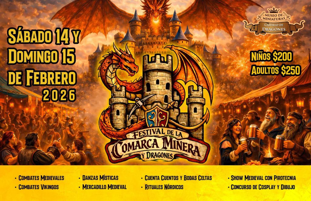 El Festival de la Comarca Minera y Dragones se perfila como una opción distinta de entretenimiento cultural, ideal para quienes buscan vivir la fantasía, recorrer mundos imaginarios y redescubrir espacios culturales desde otra mirada. Un fin de semana para dejarse llevar por la magia y el asombro.